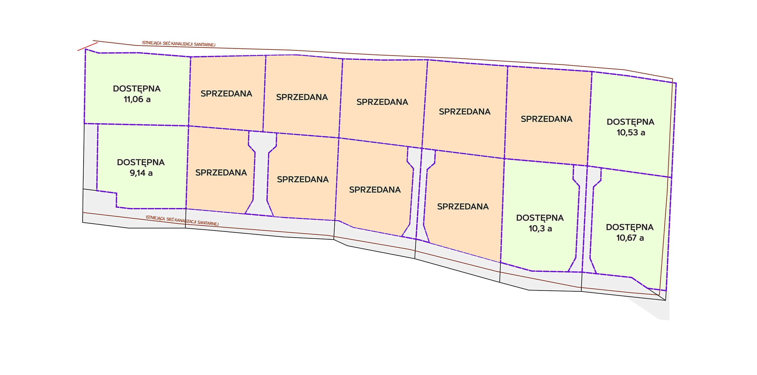 Niezwykle urokliwe otoczenie działek na sprzedaż tworzy pagórkowaty krajobraz. To idealna lokalizacja dla osób szukających spokojnego miejsca do zamieszkania poza centrum, przy zachowaniu doskonałych walorów komunikacyjnych.
